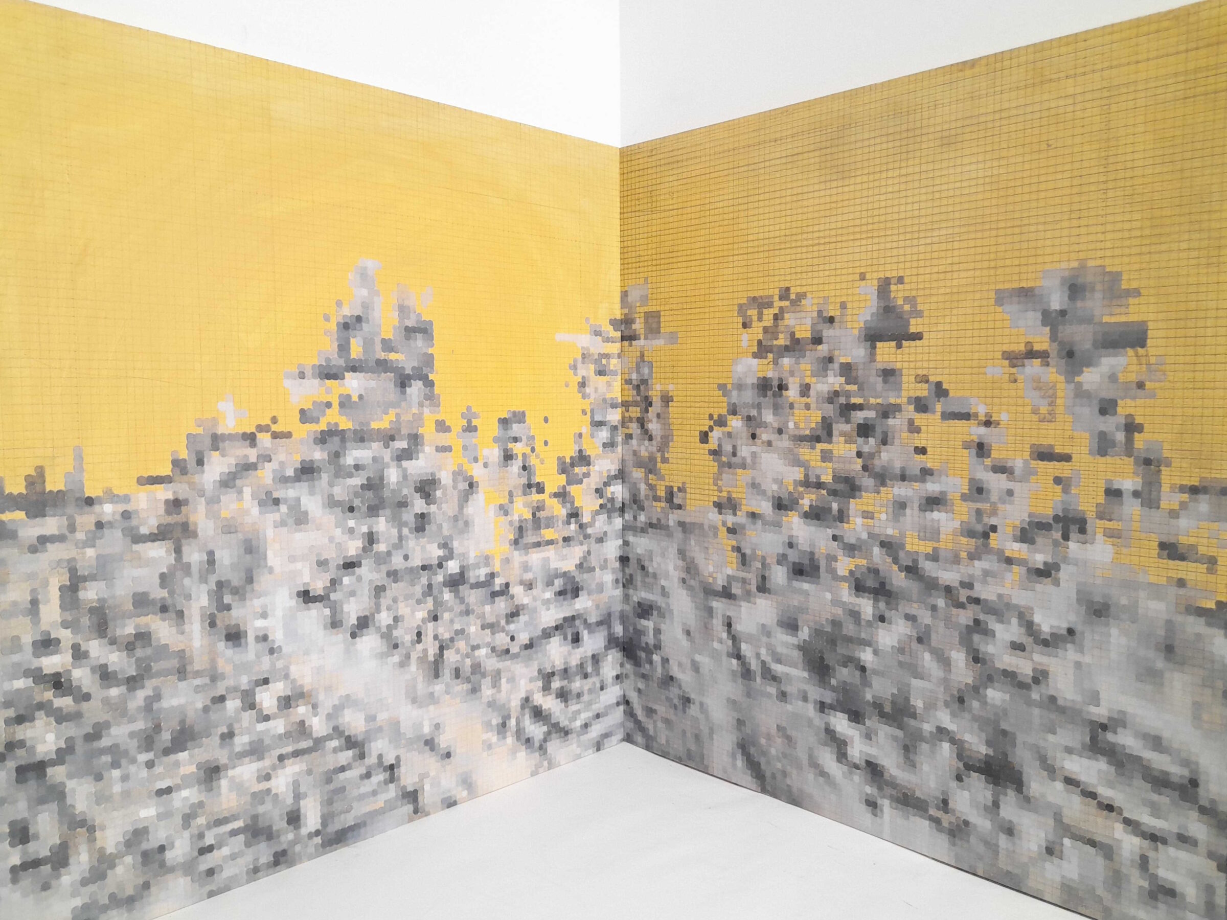 El díptico KENT es el primero de una nueva serie de cuadros pensados para ser expuestos en ángulo. Las obras se apoderarán de espacios a priori no expositivos y se volverán dinámicas, interactuando con el hábitat del espectador.